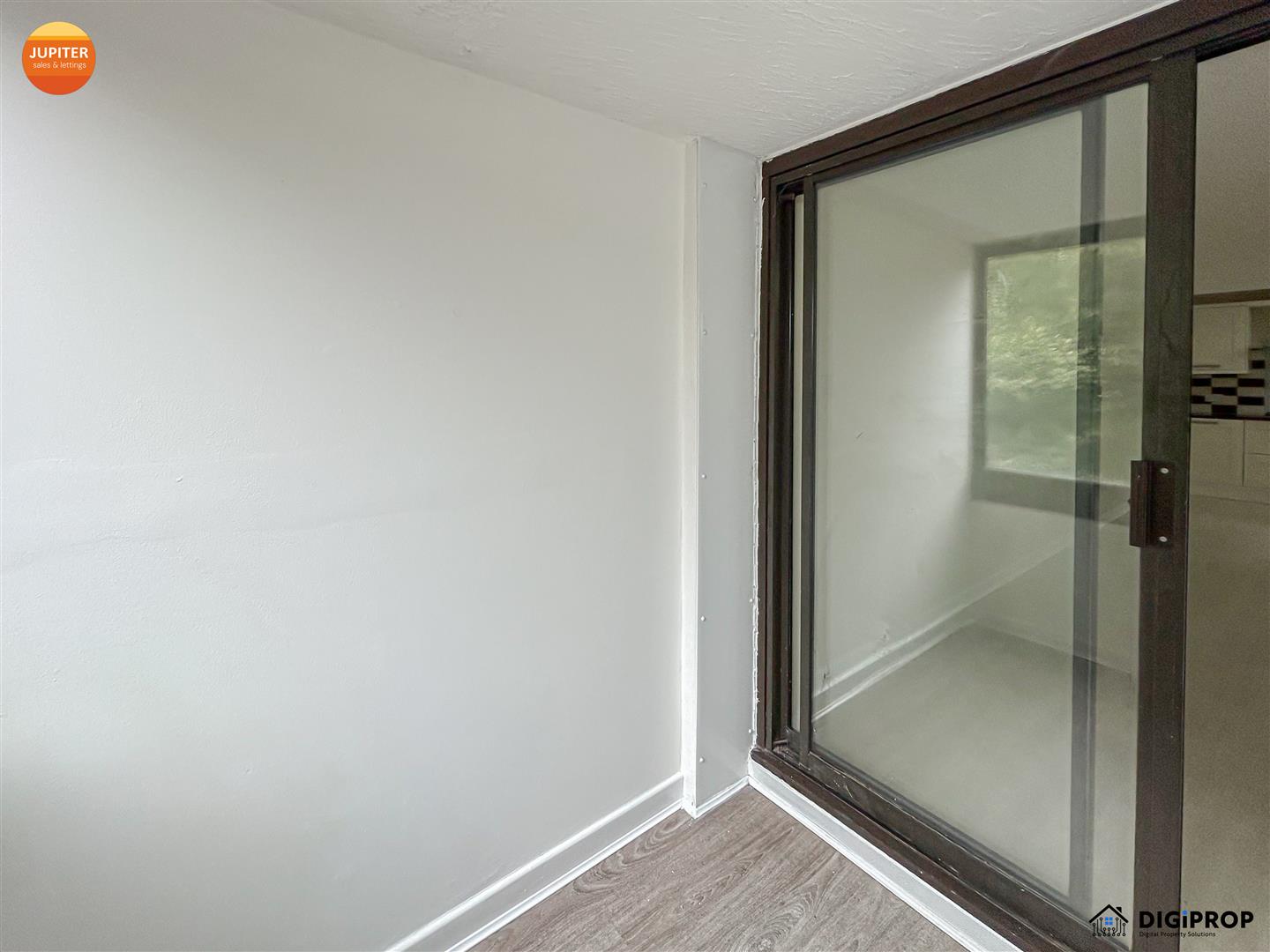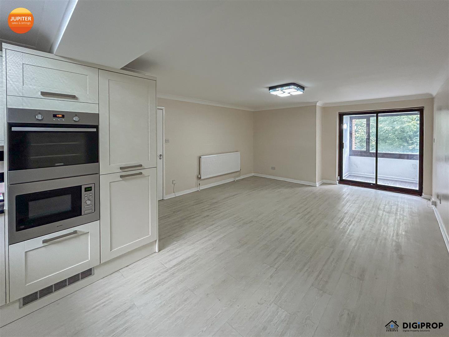 Bright lounge/diner with access to an enclosed balcony
